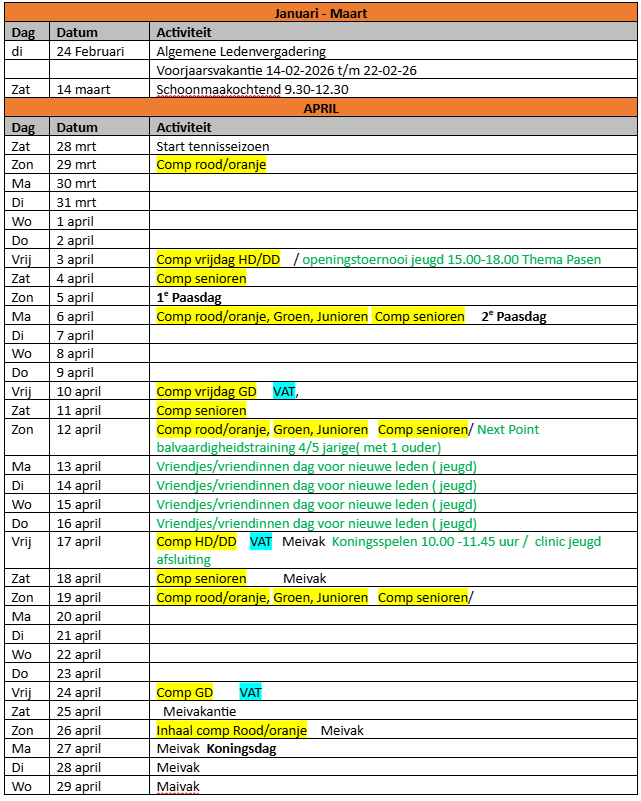 Alle activiteiten zijn onder voorbehoud van doorgang. Communicatie hiervoor zal via de diverse clubkanalen verlopen. Heb je vragen over een van de activiteiten? Neem dan contact op via de commissie die over de activiteit gaat. Voor een overzicht, ga naar: https://www.hethofland.nl/bestuur-en-commissies.